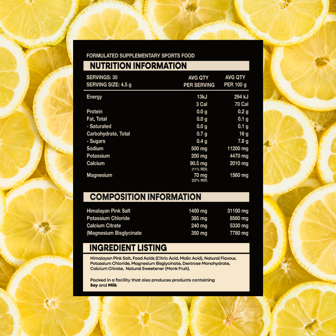 500 mg sodium, 200 mg potassium, and 70 mg magnesium — the ideal ratio to replace what you lose through sweat and keep you performing strong.